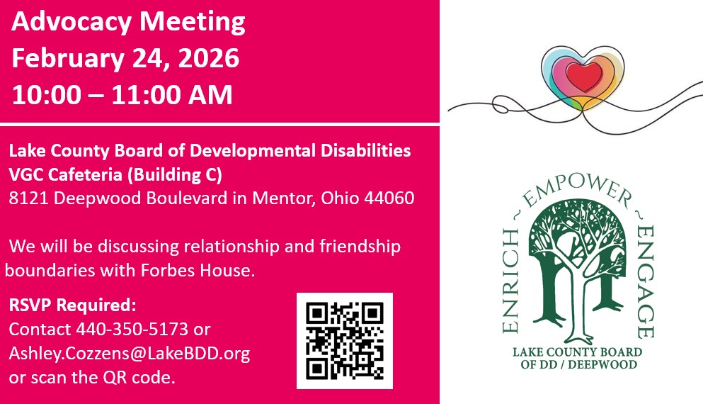 If you are interested in learning more about how to help advance advocacy in our community call 440-350-5173 to learn more the Lake County Advocacy Council.