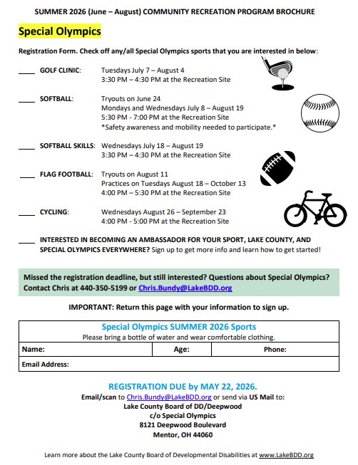 For additional information about Special Olympics Lake County, please call 440-350-5119 or email Chris.Bundy@LakeBDD.org.